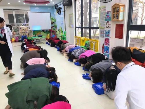 Ngày 16/3/2019, trường mầm non đã mời các bác sĩ phòng khám Cây Thông Xanh đào tạo kỹ năng sơ cấp cứu cho toàn bộ giáo viên trường. Các cô đã học 4 kỹ năng cơ bản: