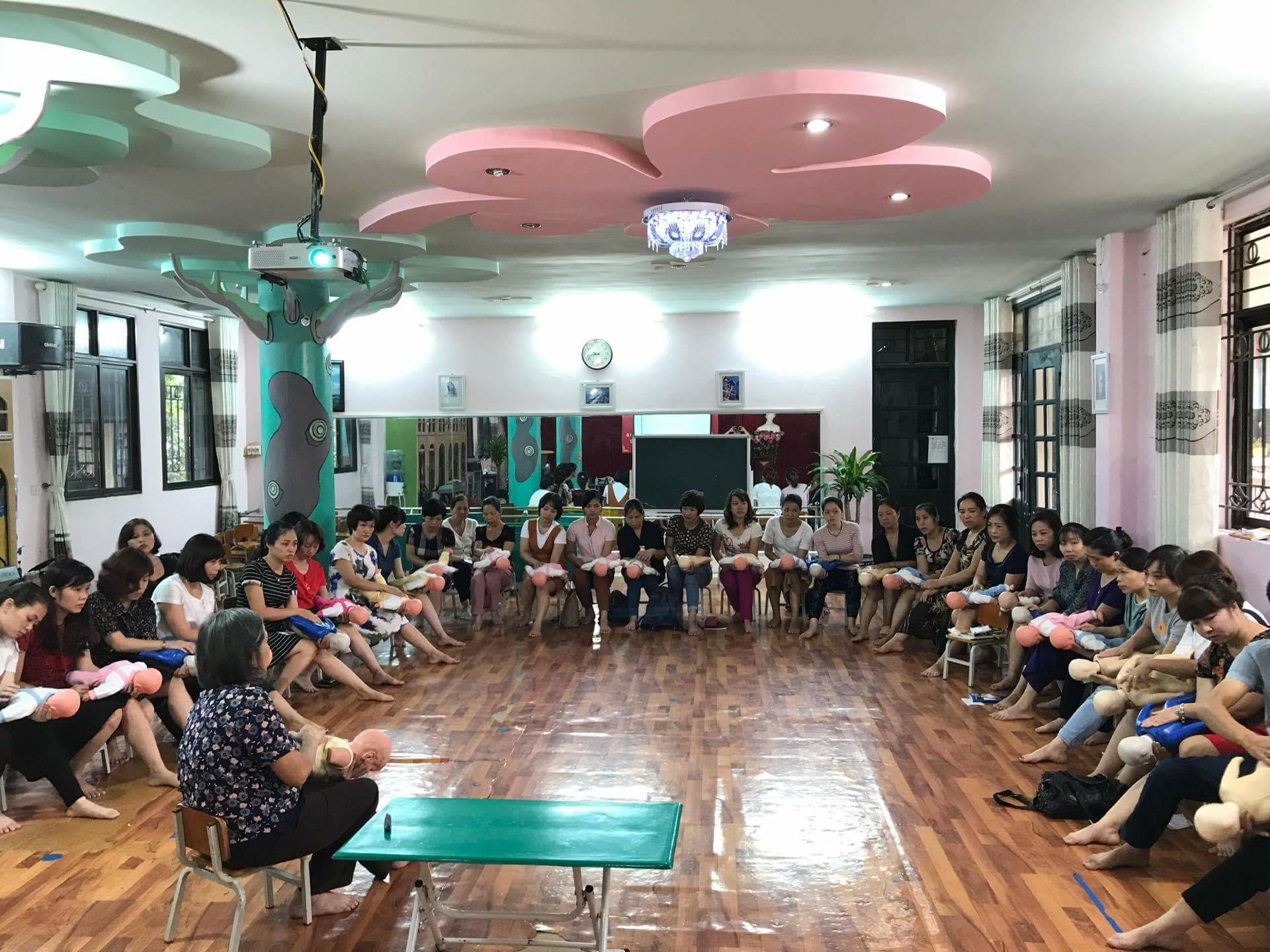 Buổi học cung cấp cho các bà mẹ, người chăm sóc trẻ các kiến thức và kỹ năng sơ cấp cứu cho trẻ trong các trường hợp nguy hiểm như ngừng thở ngừng tim, hóc dị vật, sặc cháo bột, bỏng, điện giật và cách phòng tránh chủ động.